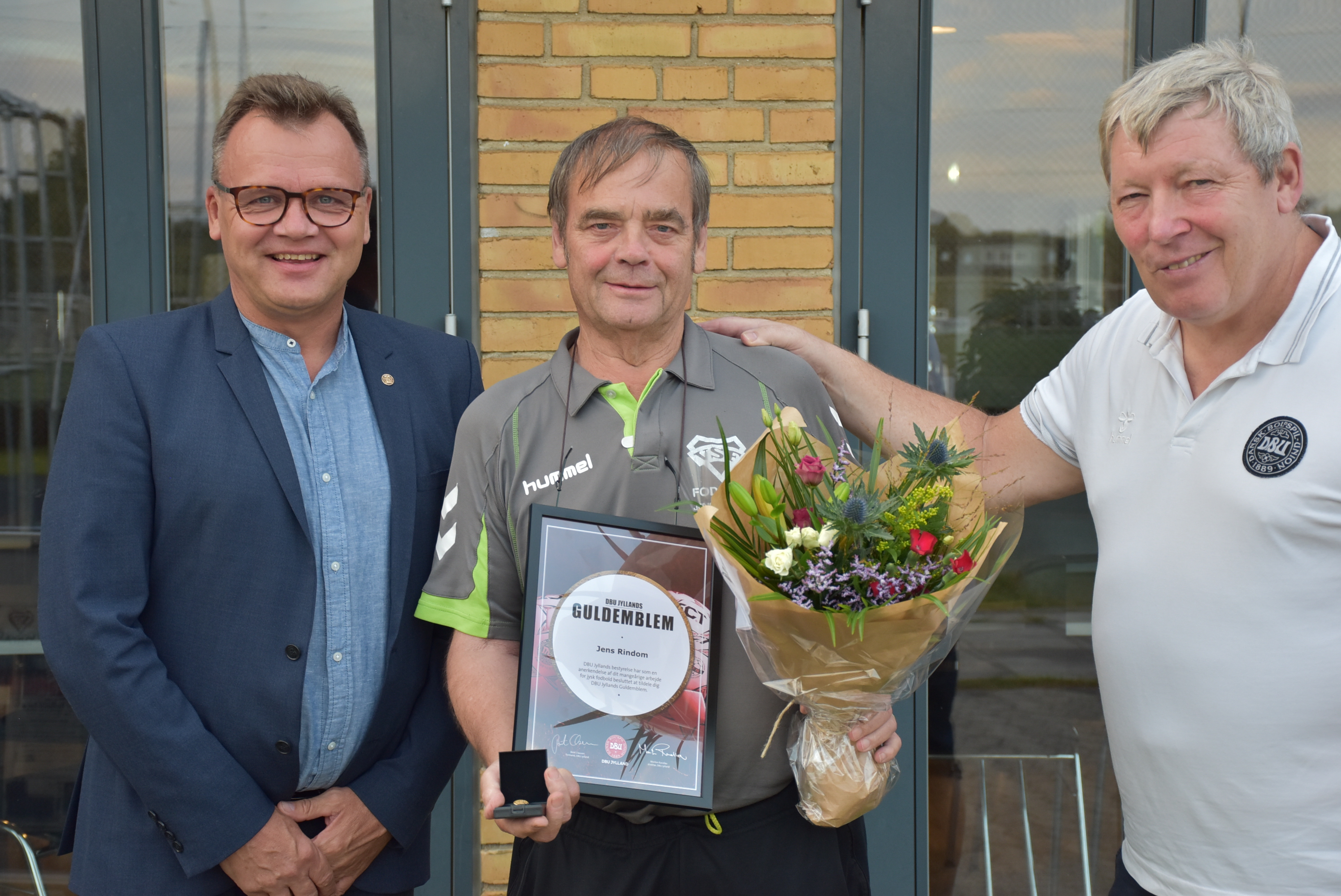 Jens Rindom med Ole Ladefoged og Lars Olesen efter overrækkelsen af DBU Jyllands Guldemblem