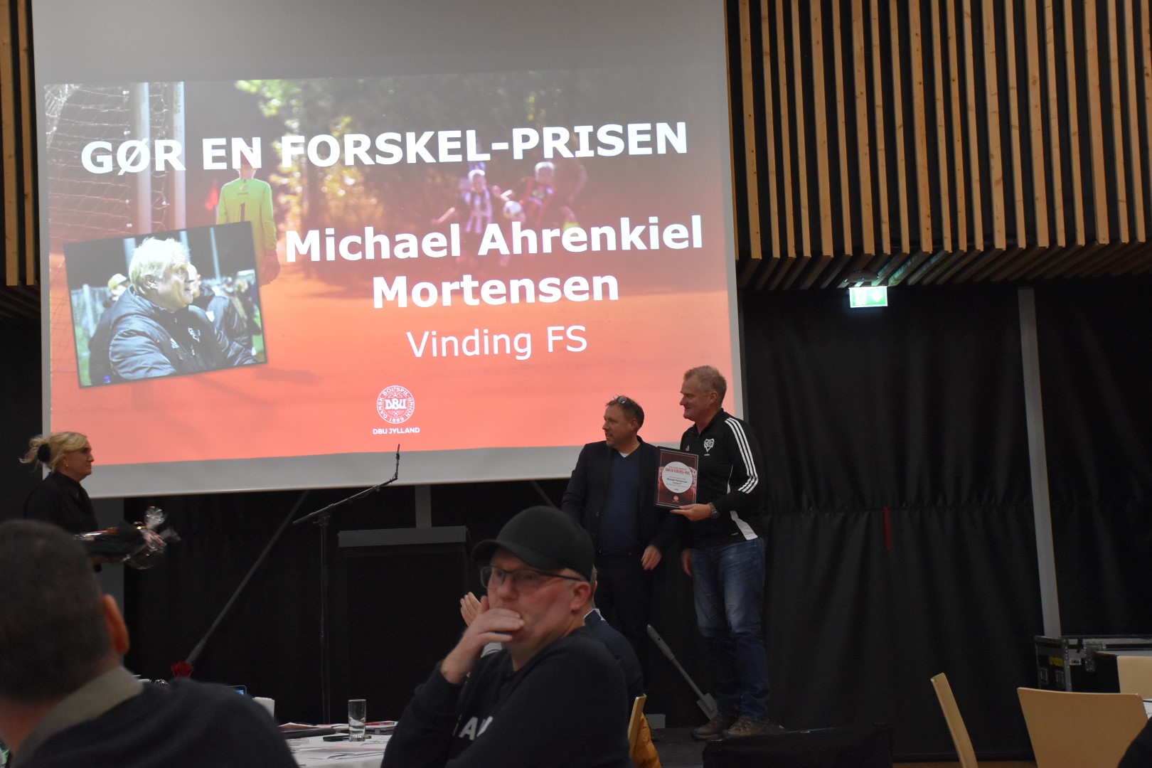 Men det var ikke de officielle punkter på dagsordenen, der skulle vise sig at blive hovedpunktet for de fremmødte VSF'ere. For inden der blev taget hul på formandens beretning, var der et punkt udenfor dagsordenen: der skulle uddeles priser. Årets "Gør en forskel"-pris blev tildelt til the one and only Michael "Mamba" Mortensen, hvilket blev annonceret via en flot motivation, hvor Mamba i starten ikke anede uråd før det blev nævnt, at modtageren "har været en del af fodboldverdenen som frivillig i de seneste 42 år - kun afbrudt af 4 års uddannelse og militærtjeneste".